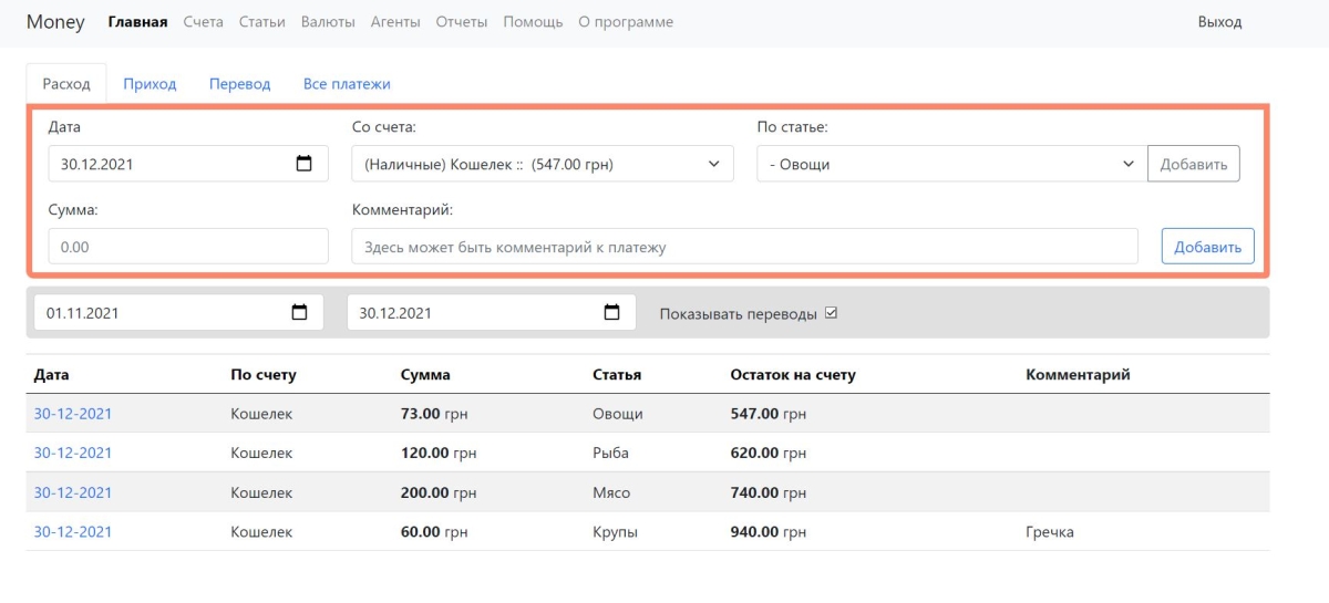 Financial Income and Expense Tracking System This application is designed for people who want to track their finances or are just learning how to do it.