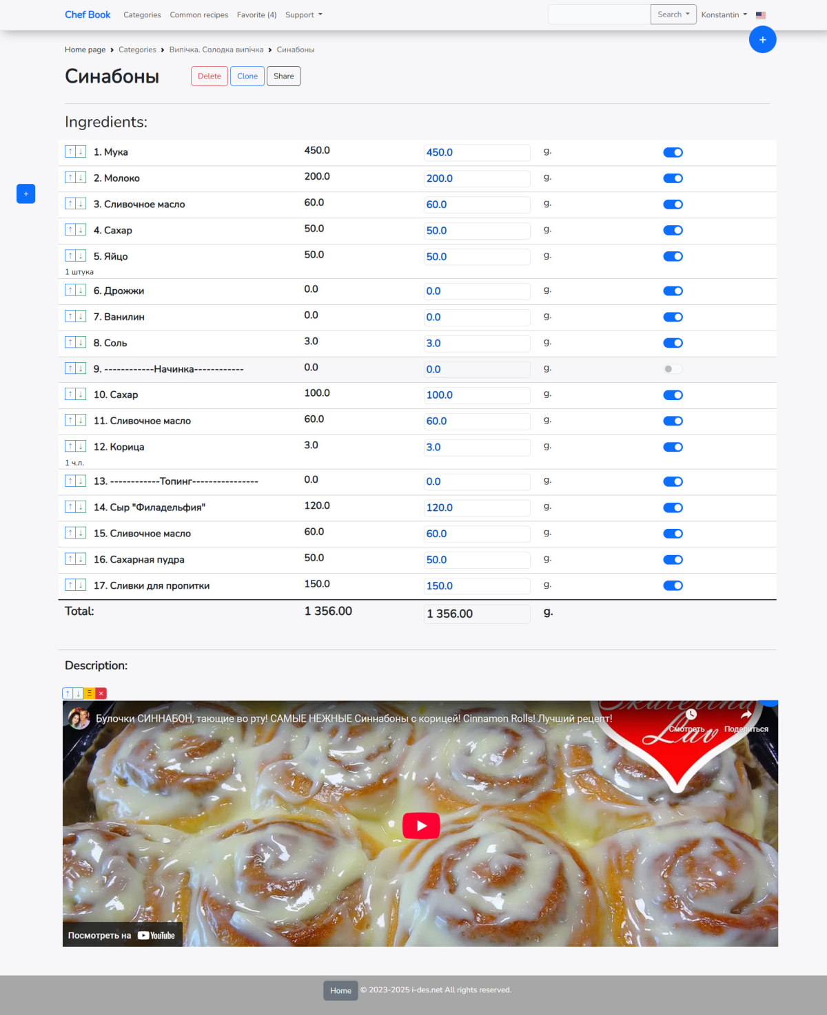 ChefBook is not just a recipe storage site, but a full-fledged culinary social network with powerful tools for working with ingredients. If you're tired of scattered notes and want a convenient, modern, and interactive way to maintain your cookbook - this service is for you.